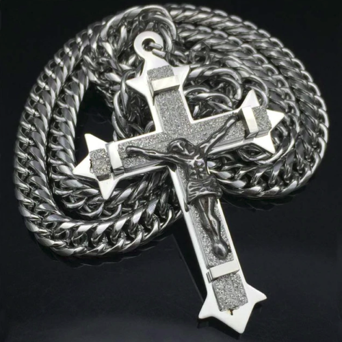Schwere Kruzifix Kreuz Anhänger Halskette Kette Herren Edelstahl Königskette