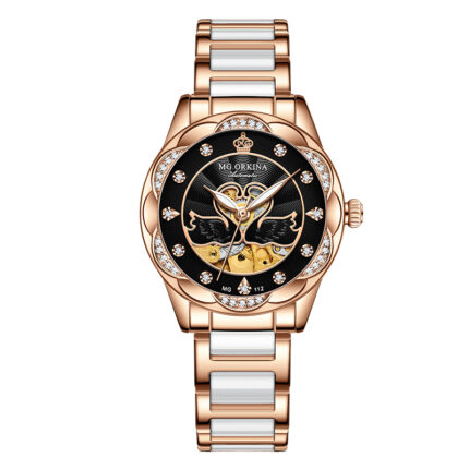 Damenuhr Mechanische Armbanduhr Weibliche Skelett Uhren für Frauen Luxus Edelstahl