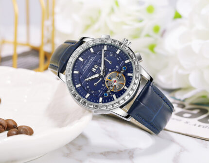 FORSINING Herrenuhren Luxus Automatische Mode Blau Echtes Lederband Display Kalender Armbanduhr