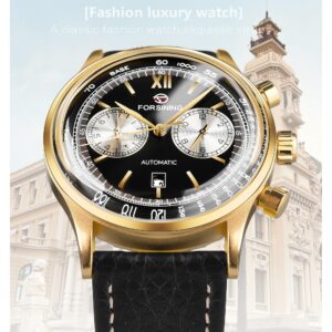 Forsining 2022: Luxuriöse Kalender-Uhr mit Glas-Konkavität und zwei Zifferblättern