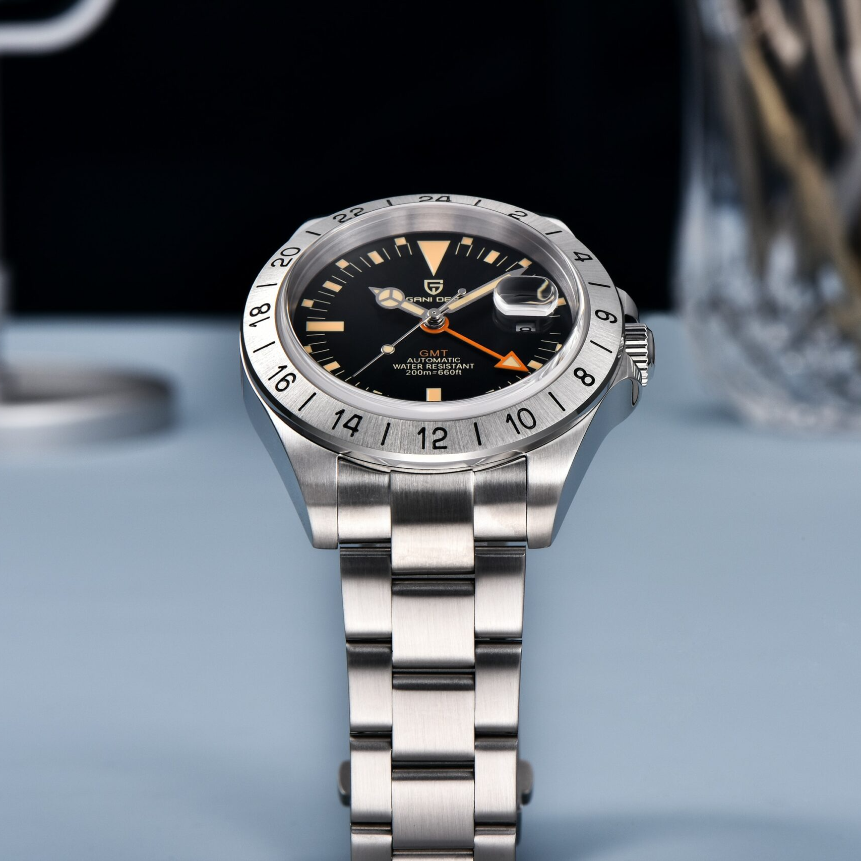 PAGANI DESIGN Herren Armbanduhr Automatik Mechanische Uhr Klassisch Retro GMT Uhr Edelstahl Wasserdicht