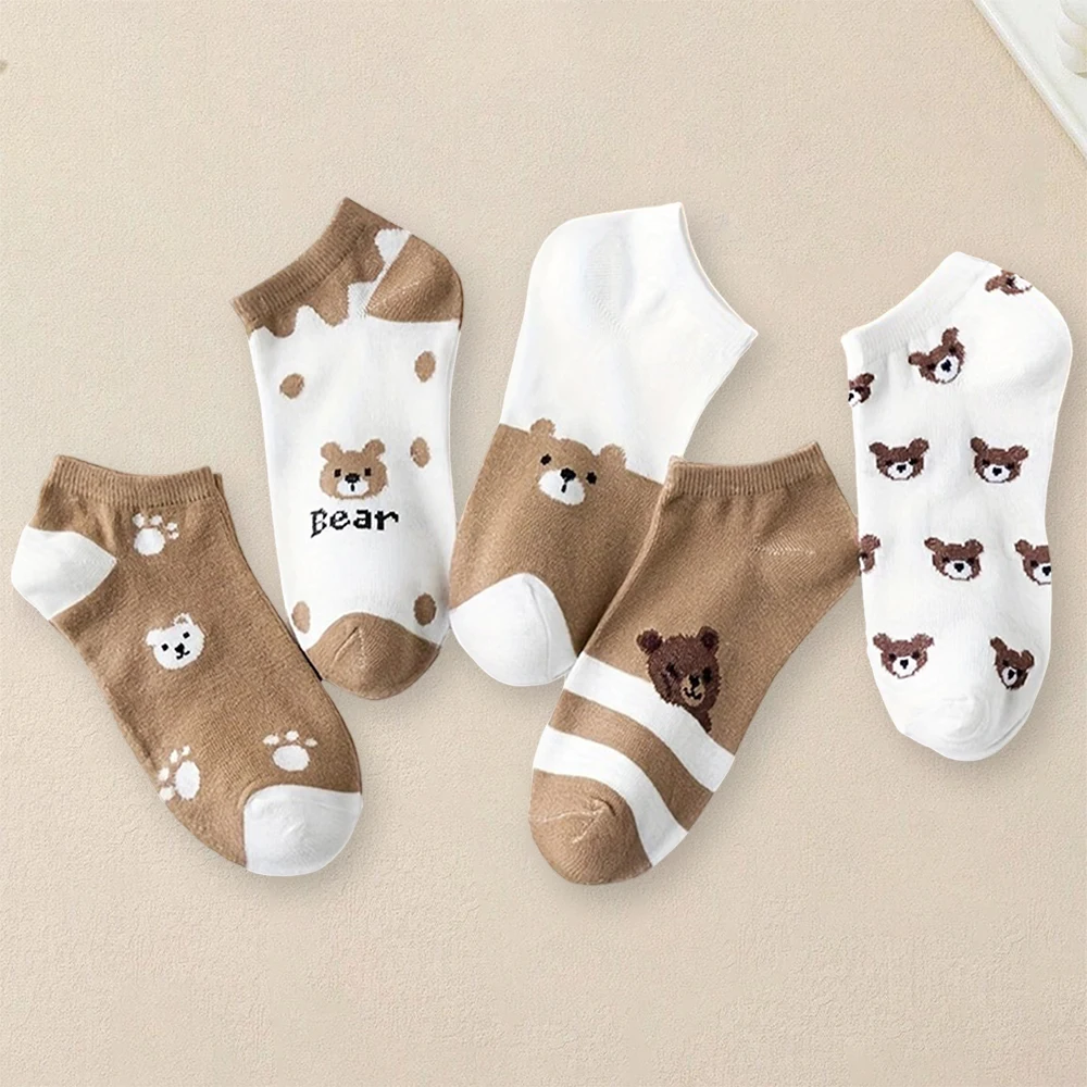 5 Pairs Women Cartoon Patterned Socks Trendy Versatile Breathable Sweat Wicking Deodorizing Antibacterial Comfortable Socks