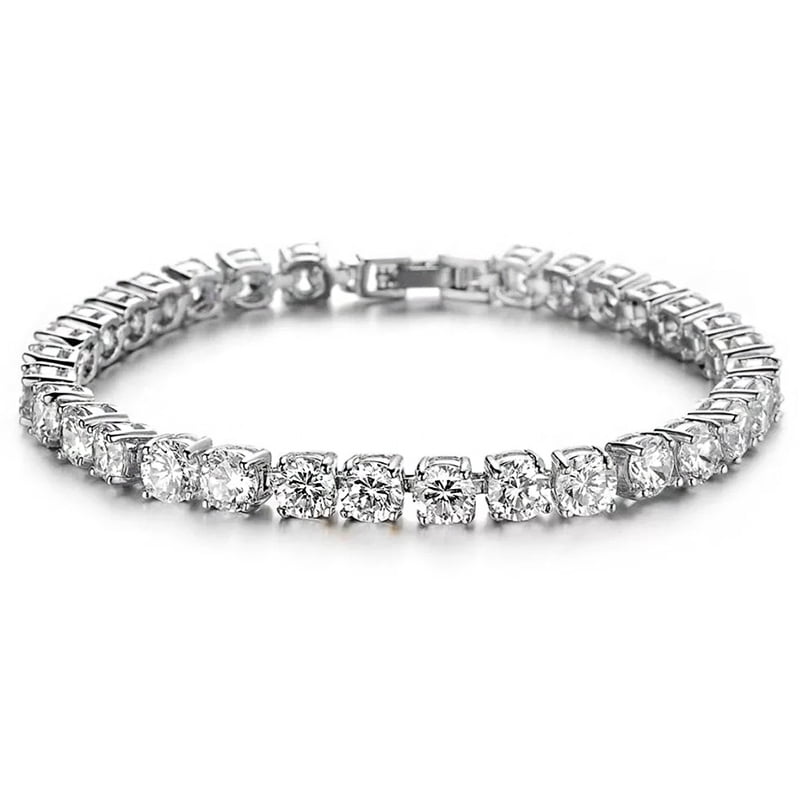 Cwwzircons klassische silberfarbe runde glänzende kubische zirkoniale brauthochzeitsfeier ennisarmbänder juwely für Frauen cb075