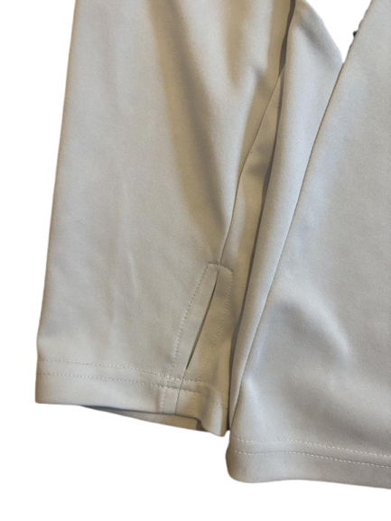 – Hellcremefarbenes Langarm-Oberteil mit halbem Reißverschluss