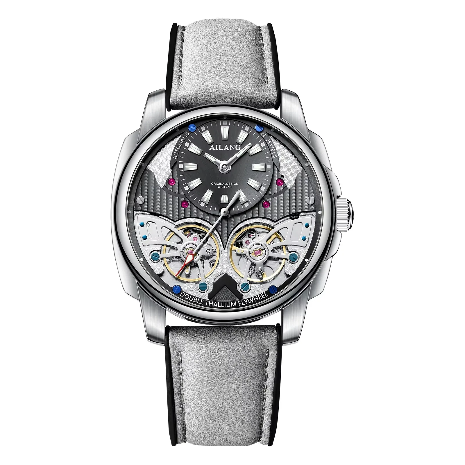 AILANG AL-8832 Automatic Skeleton Watch Double Flywheel Stainless Steel Leather Band
