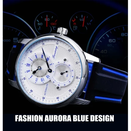Mechanische Herrenuhr für Herren Automatik Transparentes Gehäuse Schwarz Weiß Gummiarmband