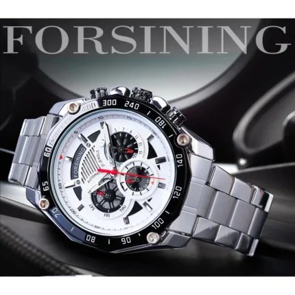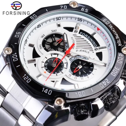 Mechanische Herrenarmbanduhr Motorrad Design Automatische Bewegung Edelstahl Wasserdicht