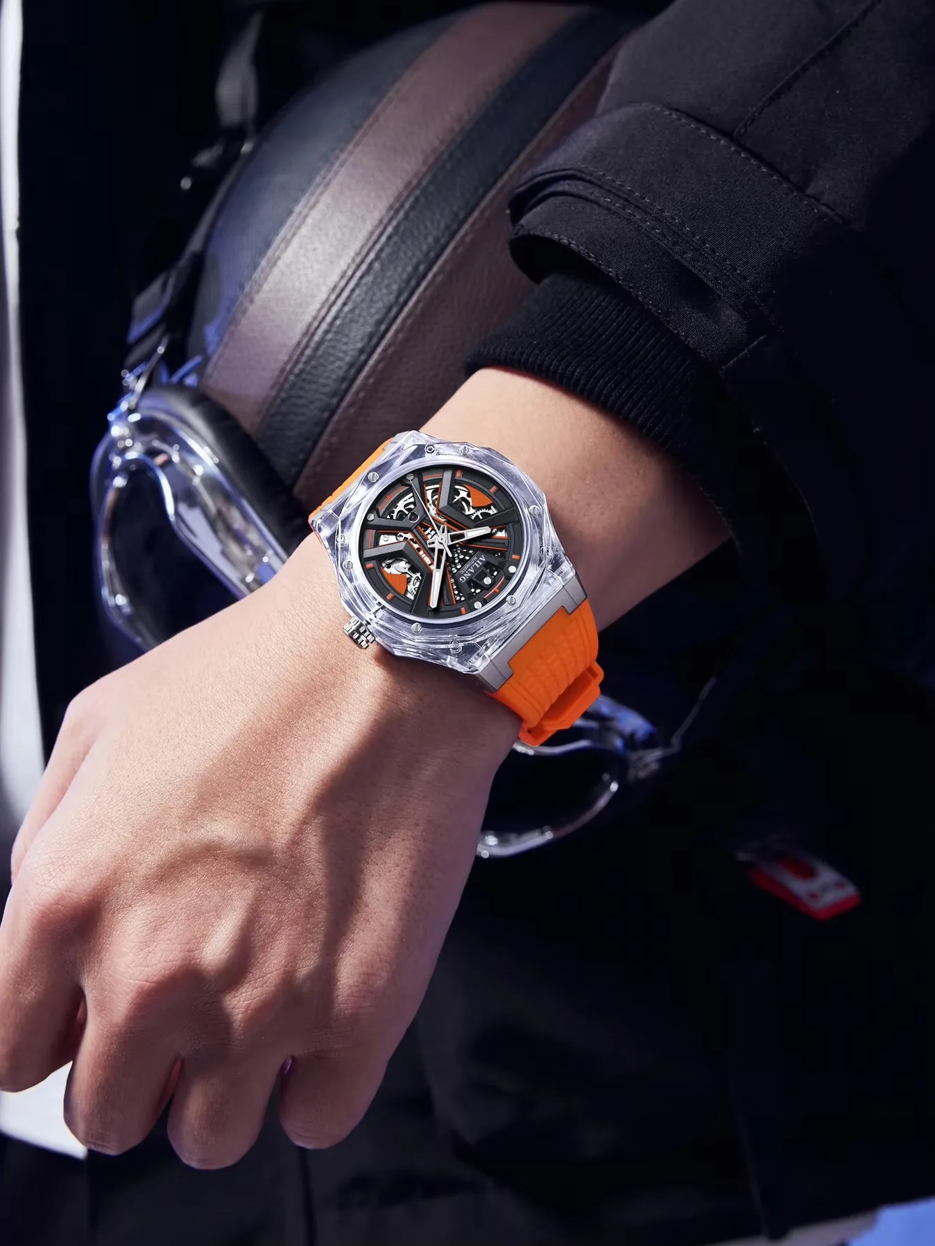 Automatikuhr mit sichtbarem Tourbillon und Leuchtfunktion für Tag und Nacht