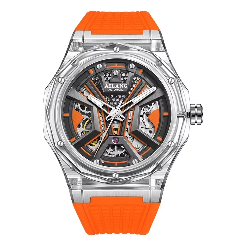 Ailang Automatik Skelettuhr f. Herren Lederarmband wasserdicht 42mm