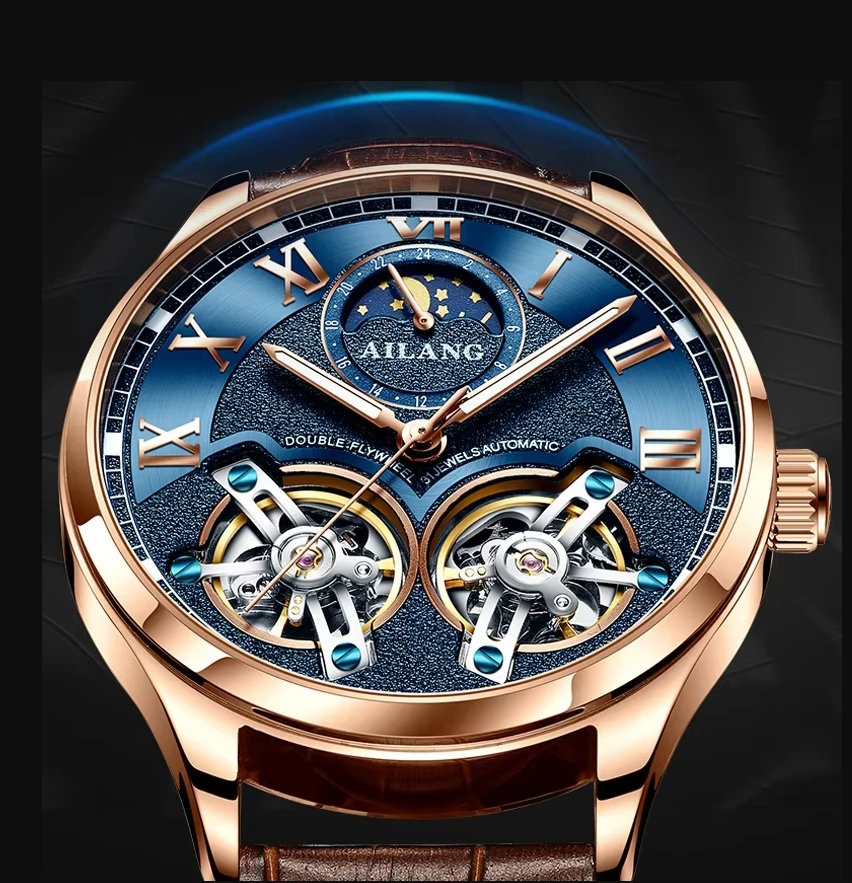 AILANG Automatikuhr Herren Doppel Flywheel Sichtbar Mechanik Leder