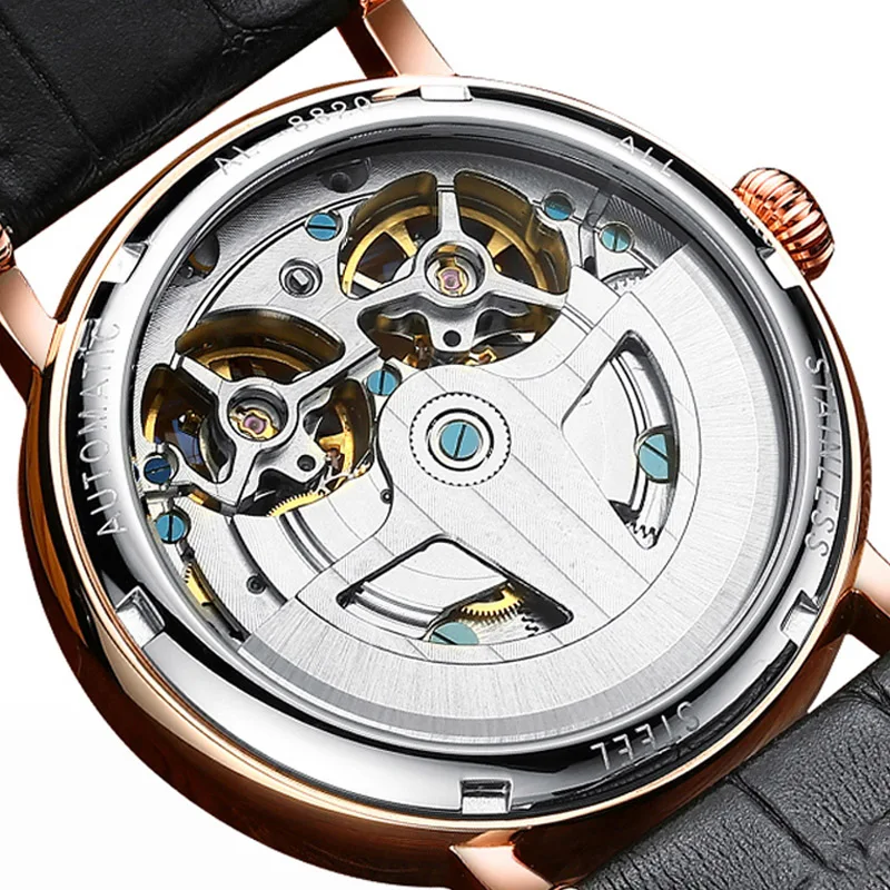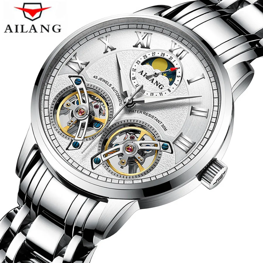 AILANG Herrenuhr Automatik Mechanik f. Business Leder Mondphase