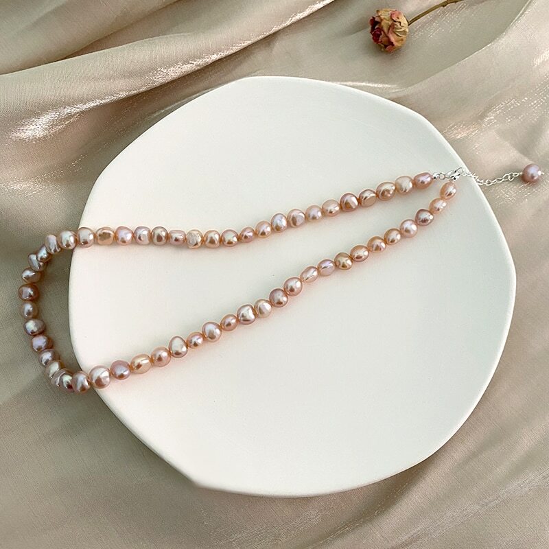 ASHIQI Natural Freshwater Pearl Baroque 925 Sterling Silver Necklace Button Jewelry for Women