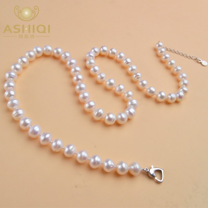 ASHIQI Natural Freshwater Pearl Necklace Near Round Pearl Jewelry for Women Wedding Gifts for The New Year Trend