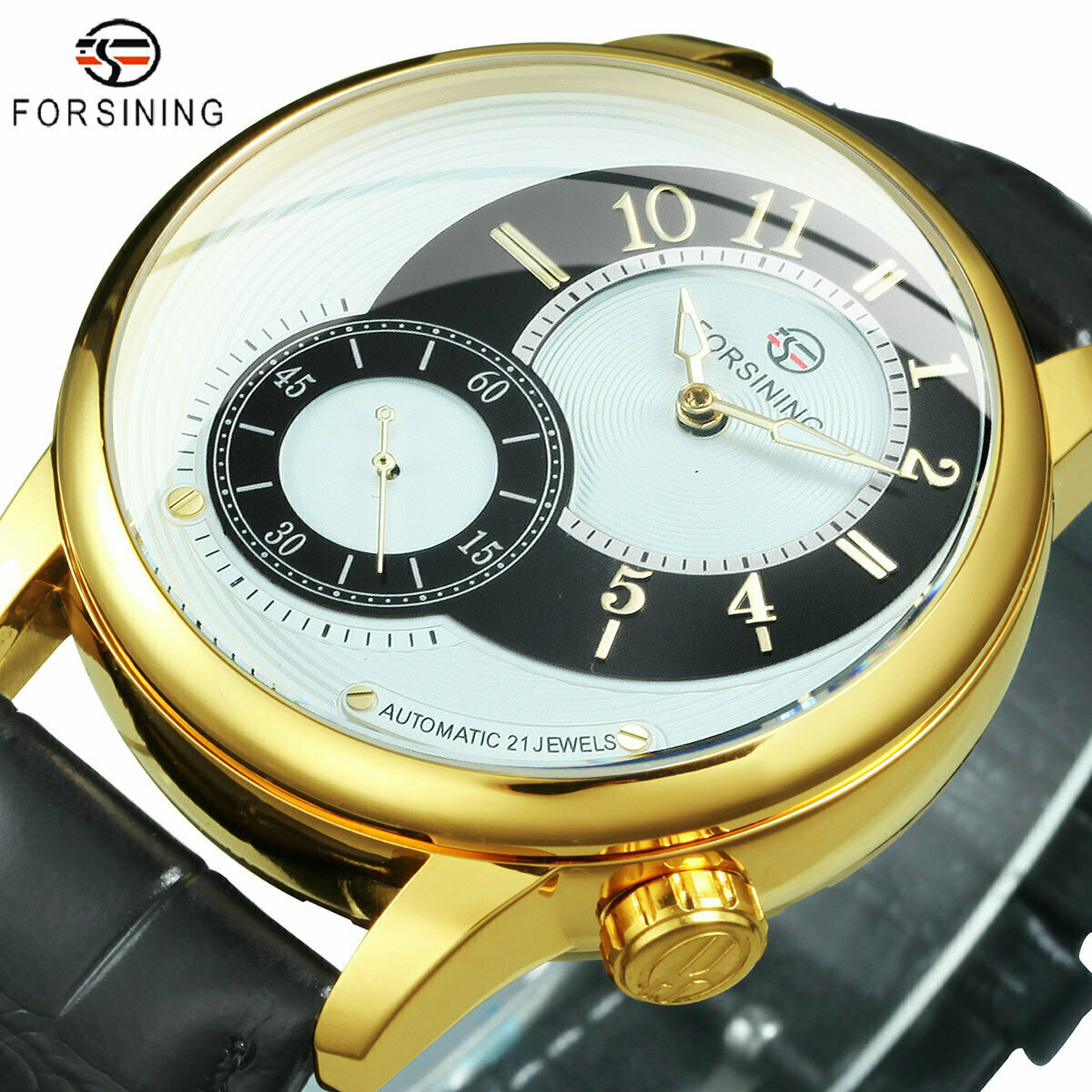 Forsining männer Luxus Top Marke Automatische Selbst wind Skeleton Anglogue Zifferblatt Uhr Mit Echtem Leder Band Beste Geschenk gold Uhr