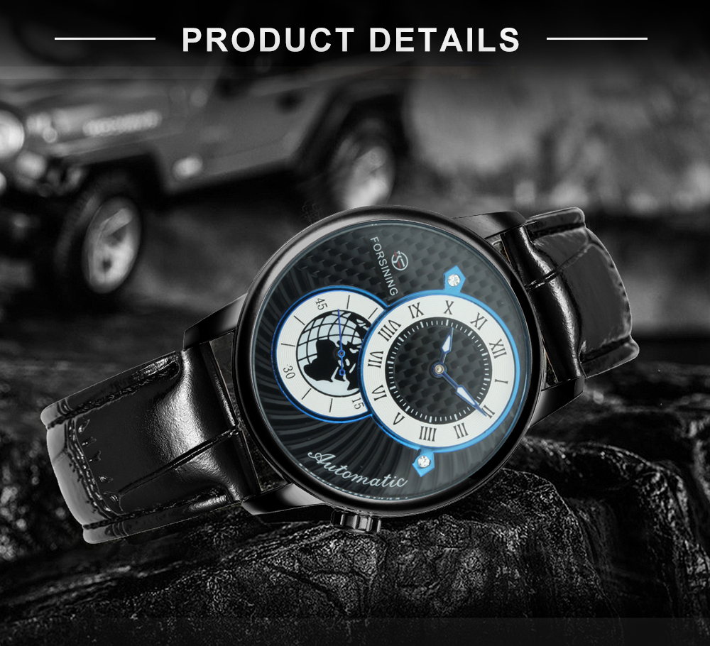 Forsining Mode Blau Militär Mechanische Edelstahl Uhr Leucht Sport Herren Skeleton Uhren