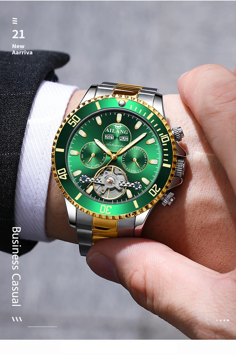 Automatikuhr Herren f. Ailang grün Skelett Tourbillon Edelstahl wasserdicht