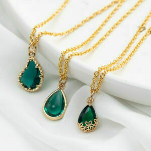 Romantic Sweet Lovely Dark Green Water Drip Drop Clear Stone Pendant Necklaces For Women Female Wedding Jewelry Accessories