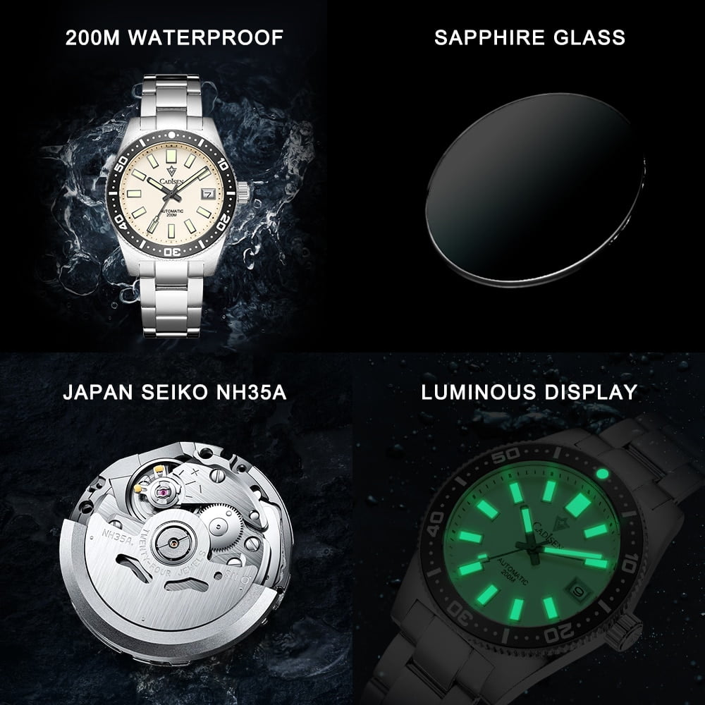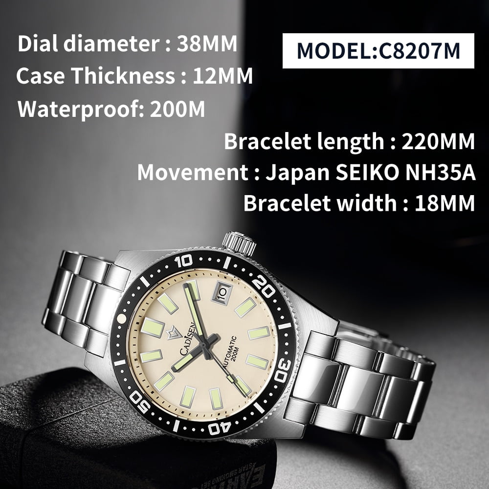 CADISEN Automatische Mechanische Uhr mit Edelstahlgehäuse & Armband Wasserdichte Uhr für Männer