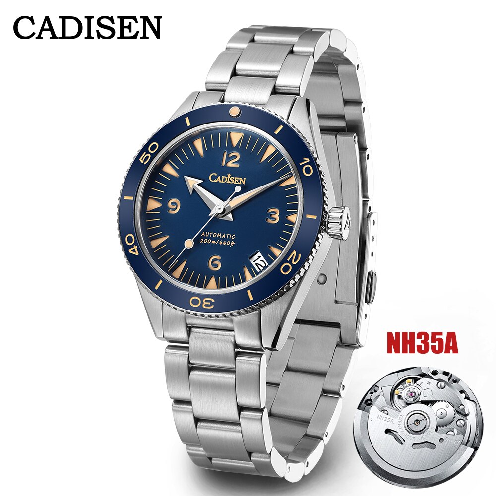 CADISEN 2022 New 38mm Men Automatic Mechanical Watches Top Brand Sapphire Stainless Steel Luminous 200m Waterproof Reloj Hombre