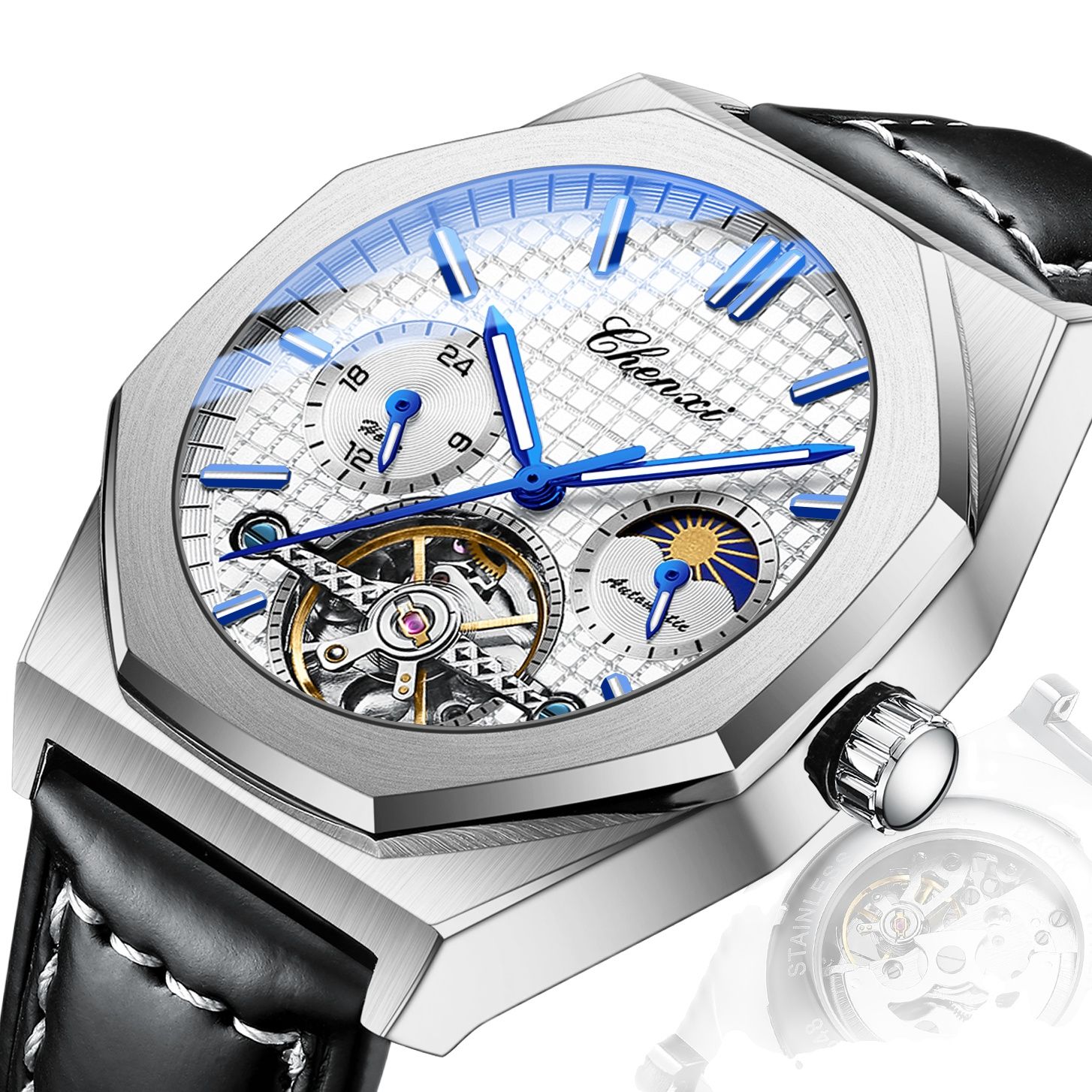 Mechanische Männer Uhr Wasserdicht Leuchtend Automatische Armbanduhr Luxus Leder Herrenuhren – Einzigartiger Stil & Komfort