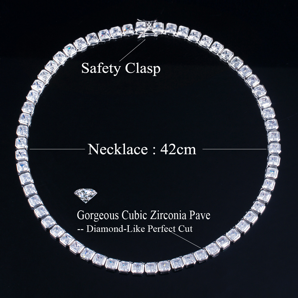 CWWZircons Bling Elegant Square Cubic Zirconia Tennis Chain Necklace for Women Party Engagement Wedding CZ Jewelry Gift CP083
