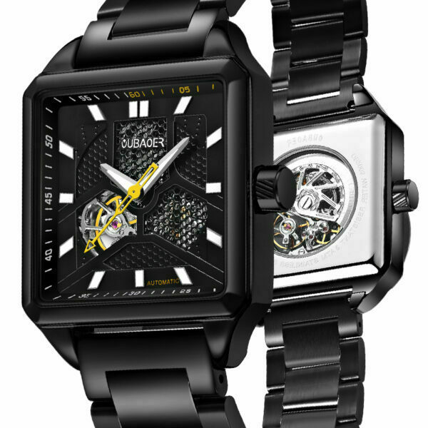 Mechanische Uhr Herren Automatik Schwarz Mode Skelett Stahl Uhren für Herren Klassische Uhren