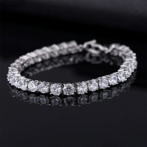 Cwwzircons klassische silberfarbe runde glänzende kubische zirkoniale brauthochzeitsfeier ennisarmbänder juwely für Frauen cb075