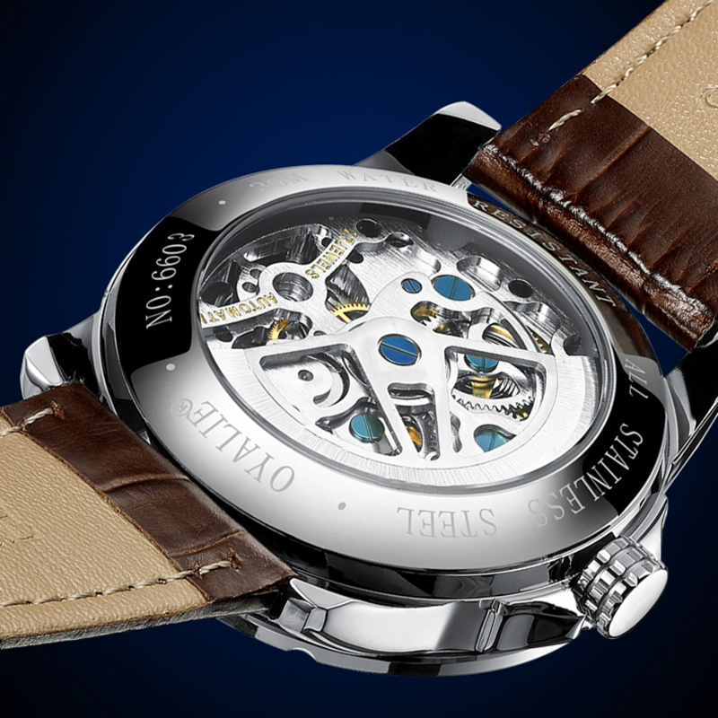 Herren-Retrouhr mit Skelettzifferblatt, automatisch, mechanisch, transparent
