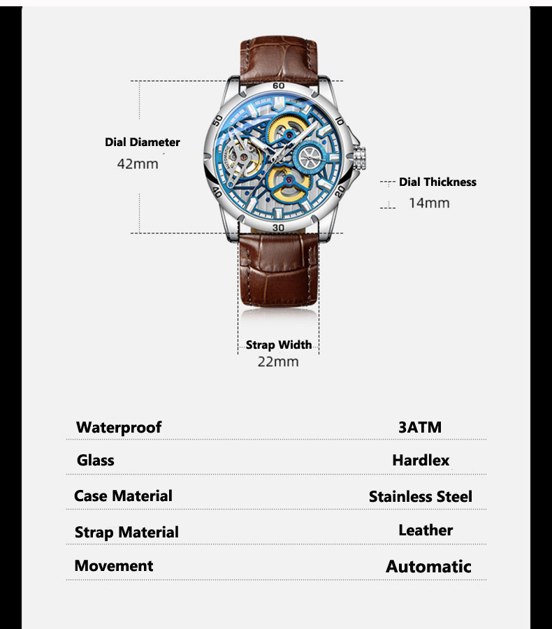 Herrenuhr Armbanduhr Automatik Leder Datum Leuchtend Skelett