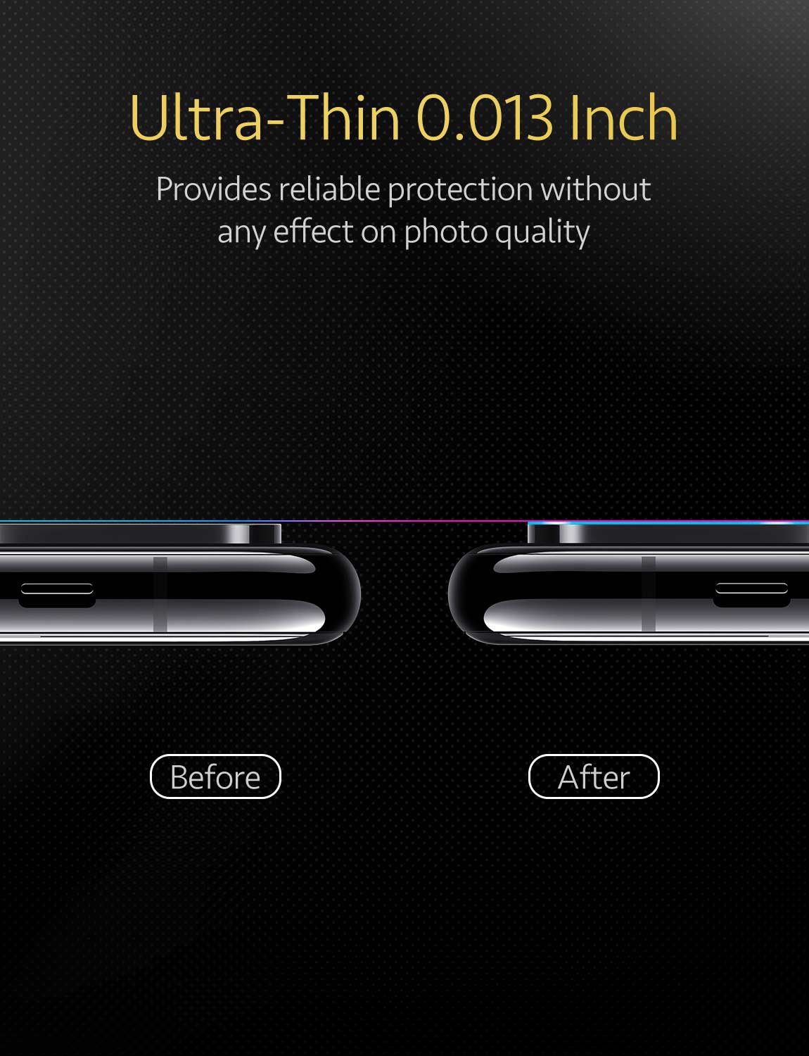 [Easy Installation] – Complimentary installation kit enables a neat, hassle-free application of the camera protector. Cleaning cloth and dust-removal stickers give you a bubble and dust-free installation.