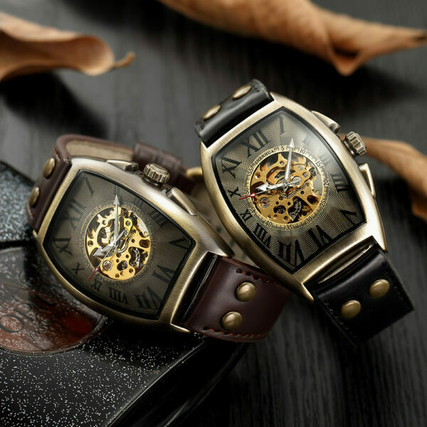 Forsining Luxus Skelett Automatikuhr mit Transparentem Gehäuse & Echtlederband