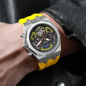 Automatikuhr für Herren Skelettuhr Edelstahl Gummiband 43 mm 30 m Wasserdicht