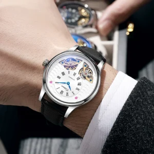 Herrenuhr Automatik Skelett Mondphase Edelstahl Kunstlederarmband