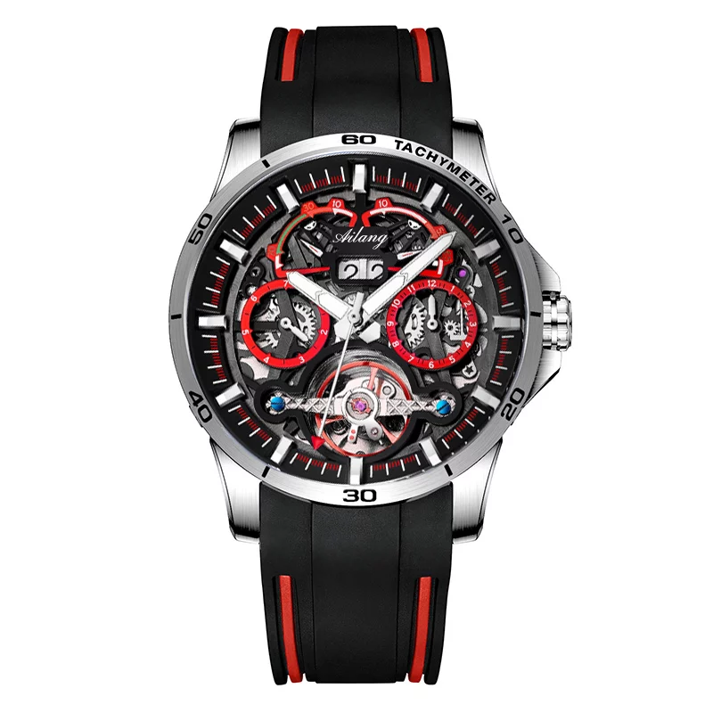 Modedesign Herren Uhr Watch Wasserdichte automatische mechanische Uhren roter Gummigurt für Männer