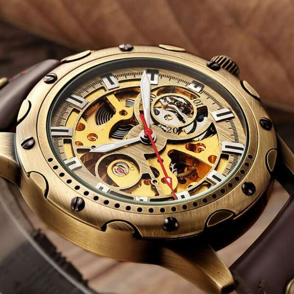 Automatische Skeleton Uhr für Männer – Lederband, Skelettuhr, Selbstaufzug