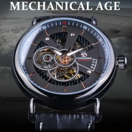 Forsining Luxus Skelett Automatikuhr mit Transparentem Gehäuse & Echtlederband