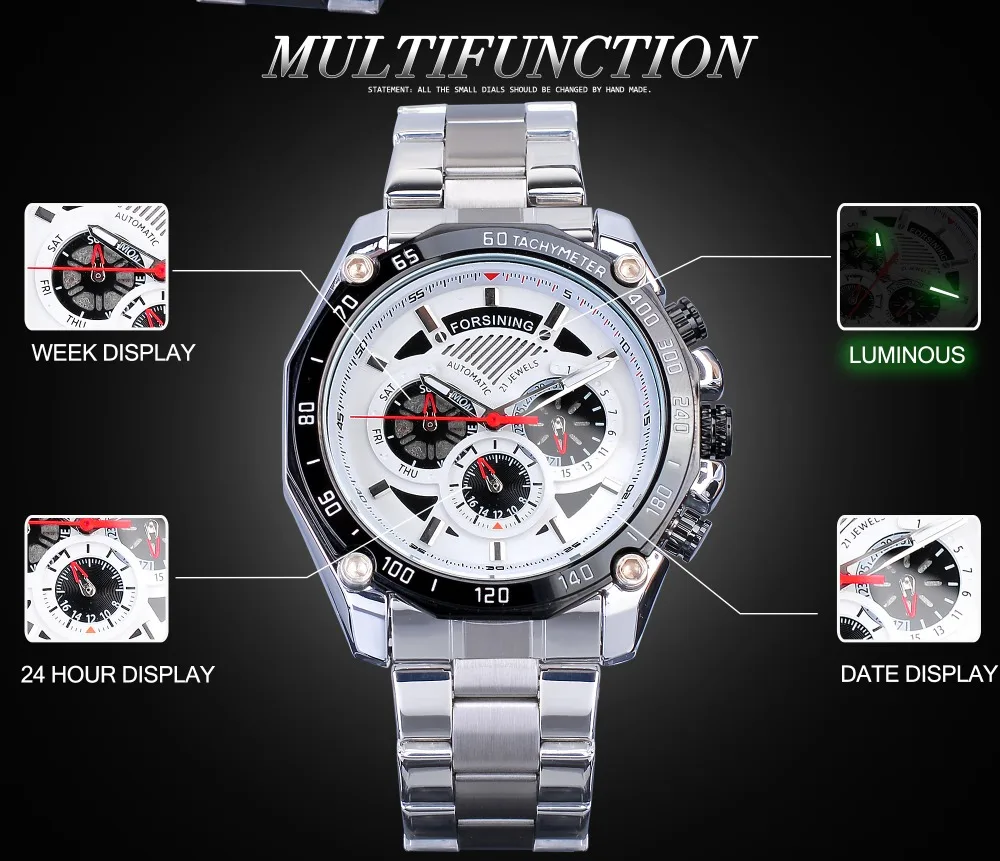 Mechanische Skeleton Uhr Edelstahl Sportuhr Leuchtende Hände Transparent Armband für Männer