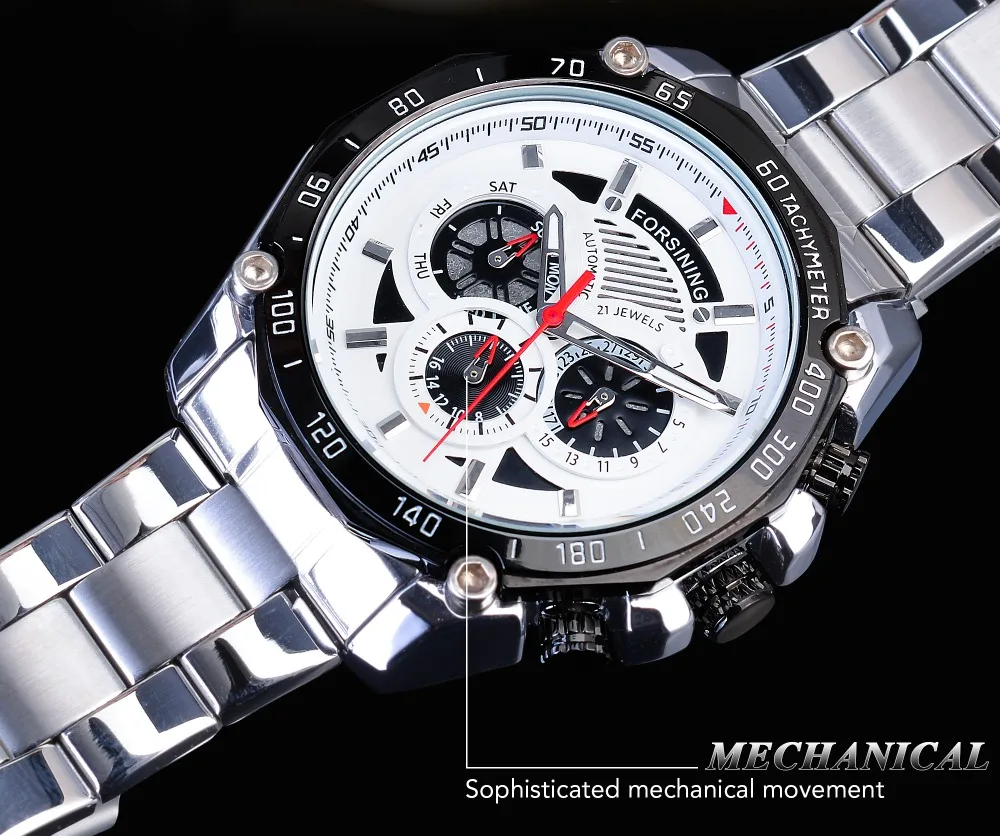 Mechanische Uhr Automatik Edelstahl Silber Sport Herren Uhr mit Kalender