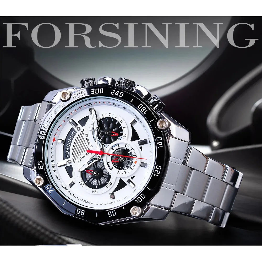 Edelstahl Automatik Uhr Herren Armbanduhr Drei Zifferblatt Kalender Sportlich