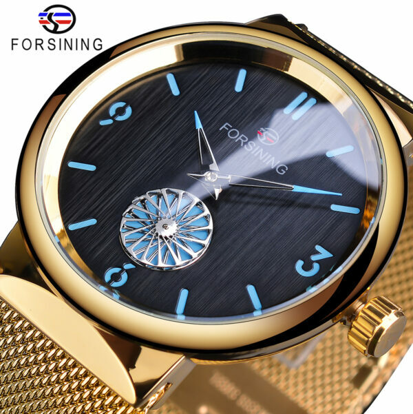 Forsining Mode Blau Militär Mechanische Edelstahl Uhr Leucht Sport Herren Skeleton Uhren