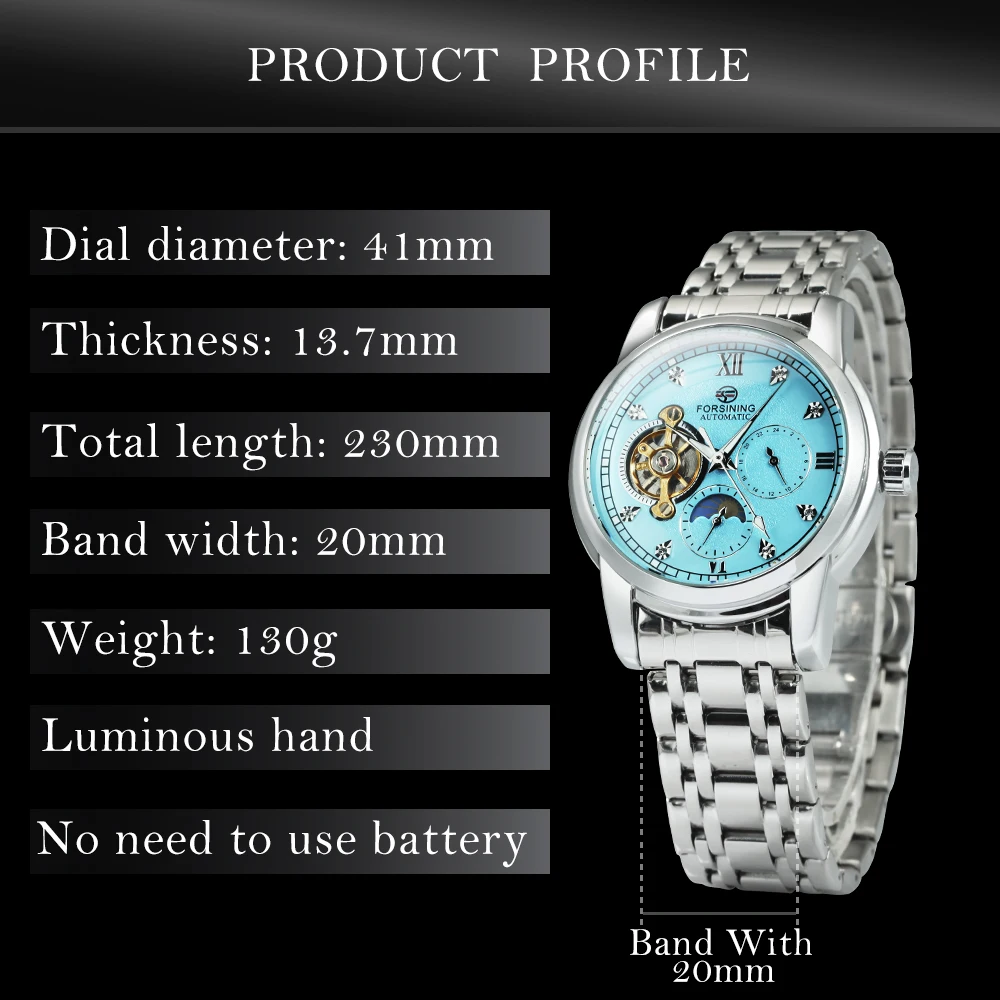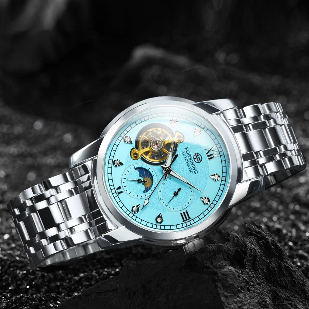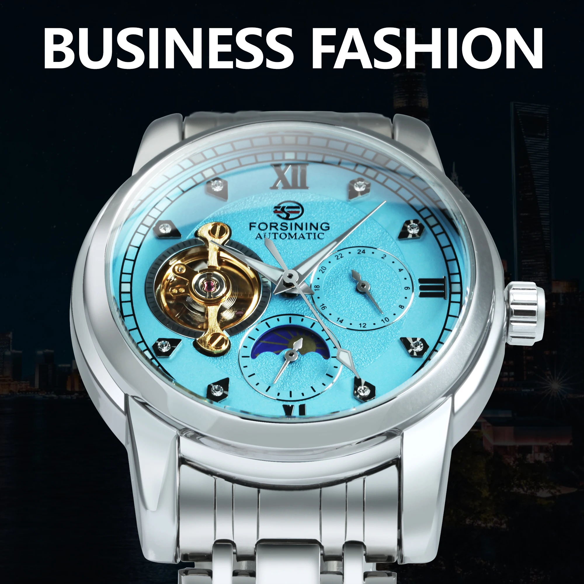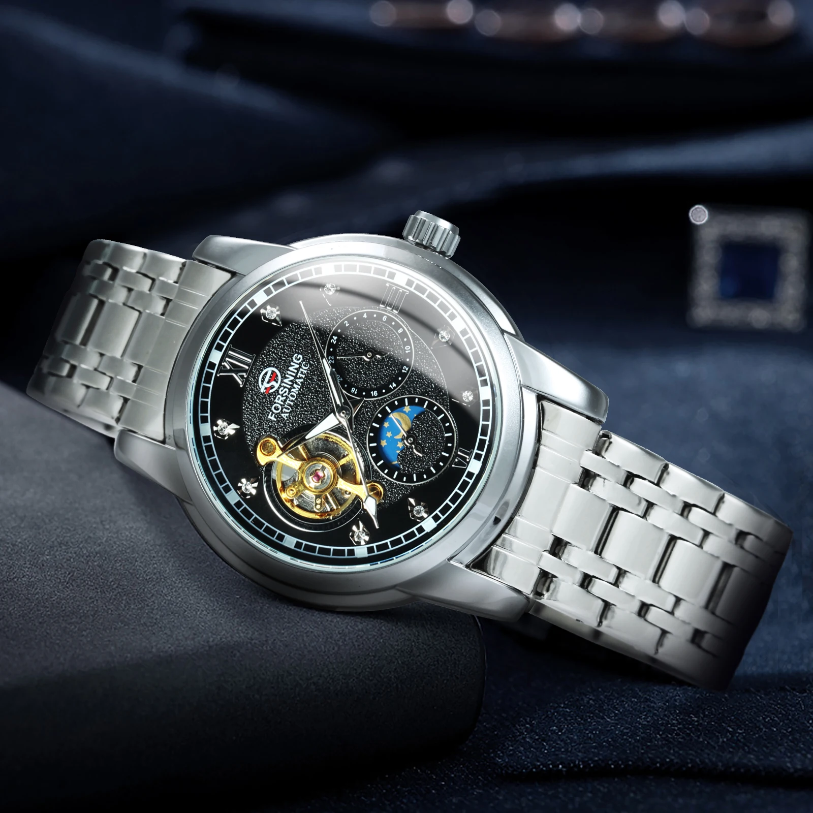 Forsining Herren Automatikuhr mit Mondphase und Diamant-Design