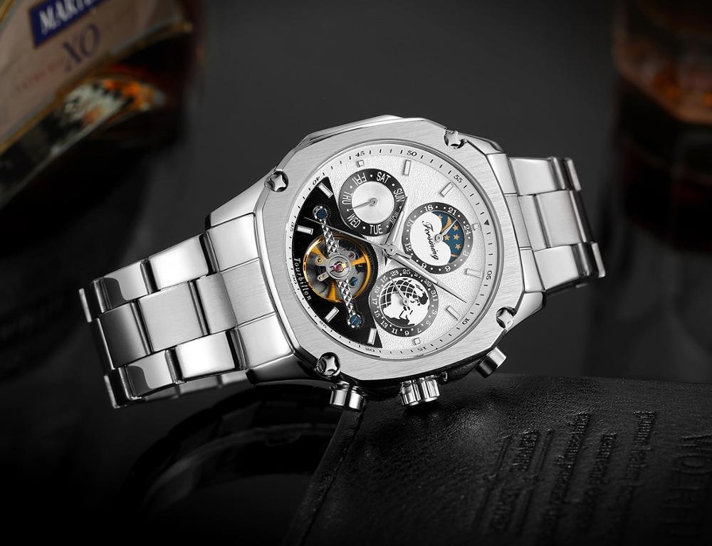 Forsining Automatikuhr Herren Mechanisch Silber Edelstahl Mondphase Automatik