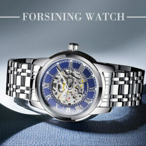 Forsining Skeleton Mechanische Armbanduhr Herren Design Automatikuhr Wasserdicht Business Style Uhren Silber
