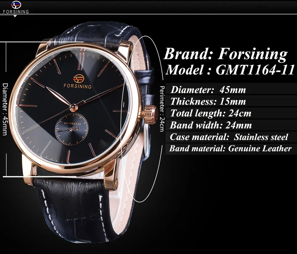 Mechanische Herrenuhr Automatischer Selbstaufzug Edelstahl Lederarmband 45 mm