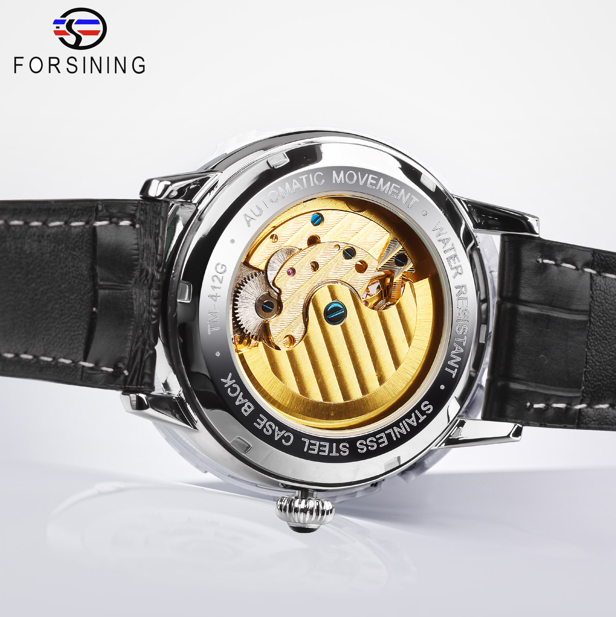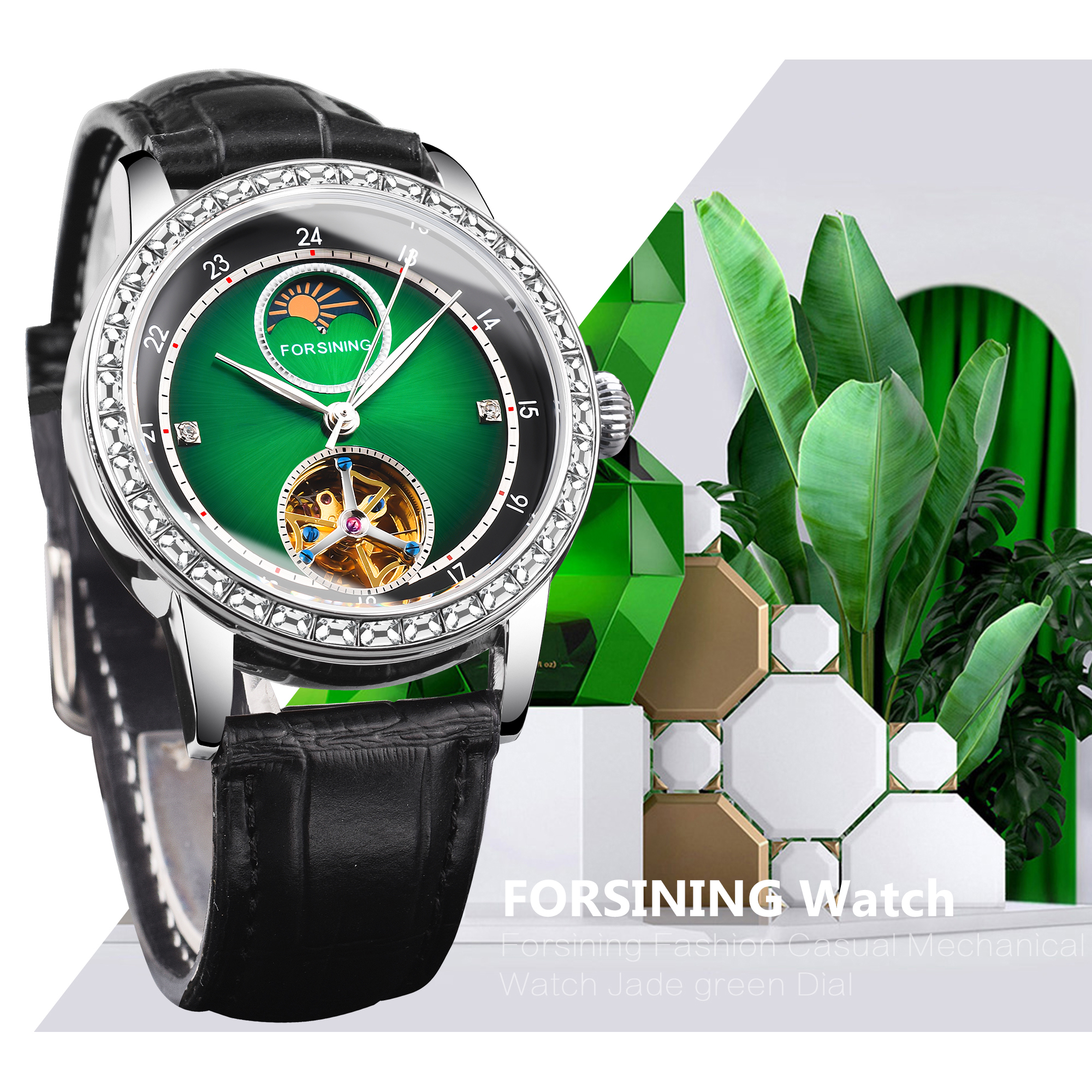 Forsining Fashion Man Luxury Jade Green Design Wasserdichte Elegante Automatische Mechanische Skeleton Uhren Echtes Leder