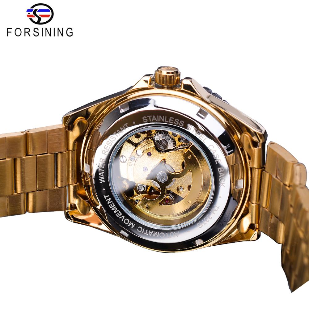 Forsining Goldene Mechanische Herrenuhr Armbanduhr Mode Skeleton Automatische Uhr