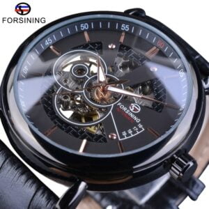 Forsining Luxus Skelett Automatikuhr mit Transparentem Gehäuse & Echtlederband