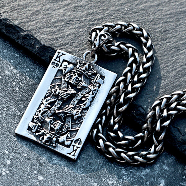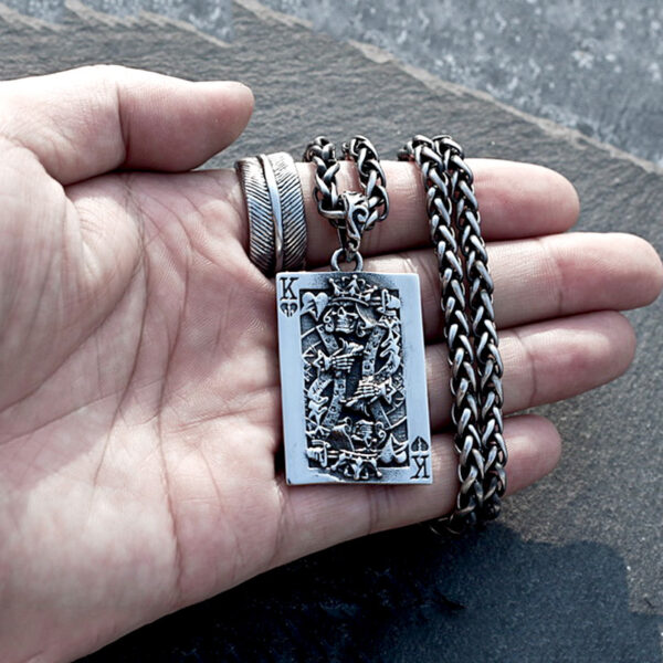 Hip Hop King Solomon Poker Pendant Necklace for Men Vintage Stainless Steel King of Spades Pendant Punk Gambler Lucky Jewelry