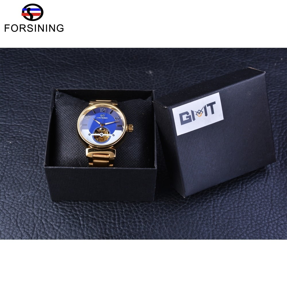Luxuriöse Forsining Ocean-Uhren mit goldenem Zifferblatt, Skeleton-Anzeige und Edelstahlgehäuse
