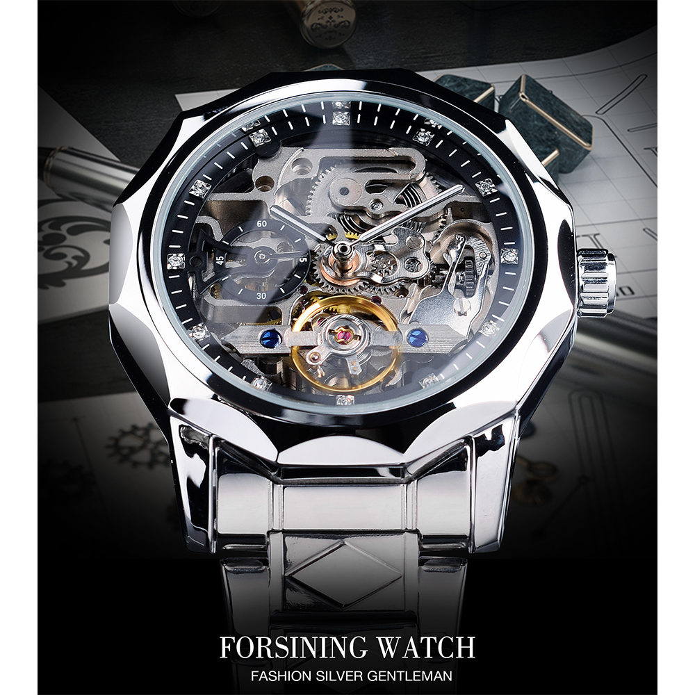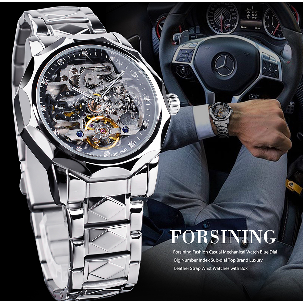 Forsining Skeleton Mechanische Armbanduhr Herren Design Automatikuhr Wasserdicht Business Style Uhren Silber